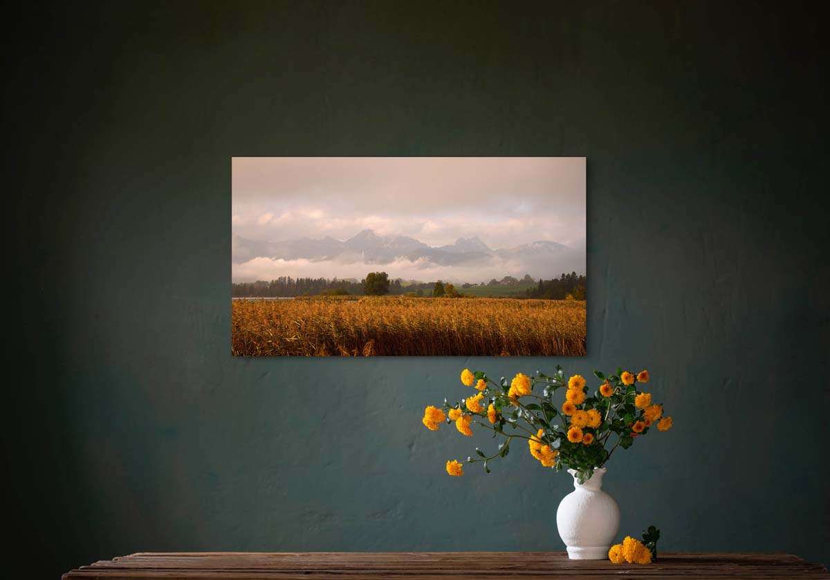 Dieses Werk passt perfekt in Wohnräume, Büros oder Orte, die Ruhe und Inspiration ausstrahlen sollen. Es ist mehr als ein Foto – es ist ein Fenster in eine friedliche Landschaft, das den Alltag entschleunigt. Holen Sie sich die Magie des Allgäuer Morgens nach Hause und genießen Sie täglich die Kraft dieses besonderen Augenblicks.